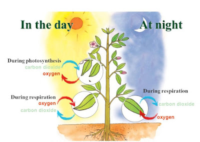 At night, when photosynthesis stops, plants release carbon dioxide.